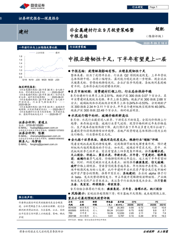 【国信证券】【20200918】非金属建材行业9月投资策略暨中报总结-31页