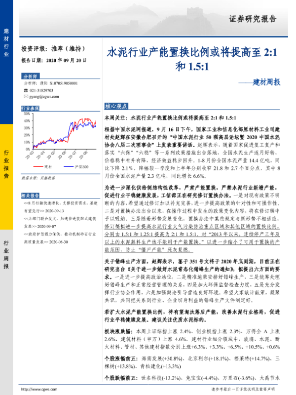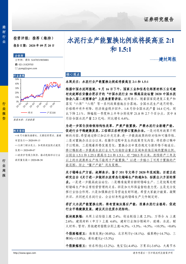 【长城证券】【20200920】建材周报:水泥行业产能置换比例或将提高至2 1和1.5 1-18页