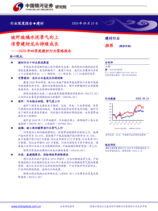 【银河证券】【20200925】2020年四季度建材行业策略报告:玻纤玻璃水泥景气向上 消费建材龙头持续成长-21页
