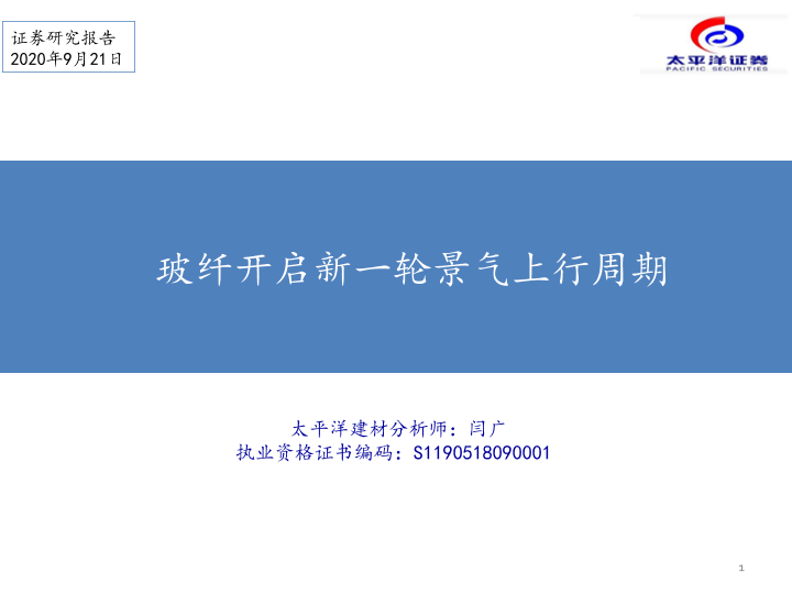 【太平洋证券】【20200921】玻纤开启新一轮景气上行周期-17页