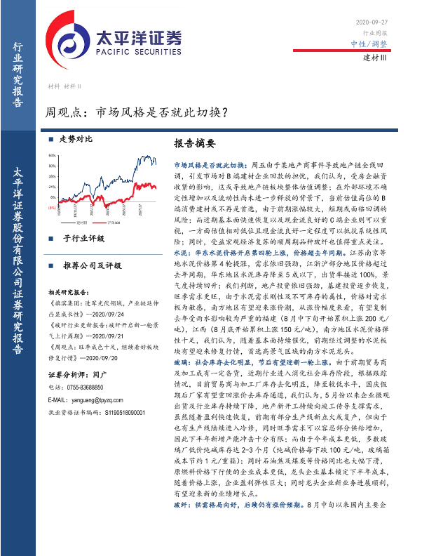 【太平洋证券】【20200927】建材Ⅲ周观点:市场风格是否就此切换?-19页