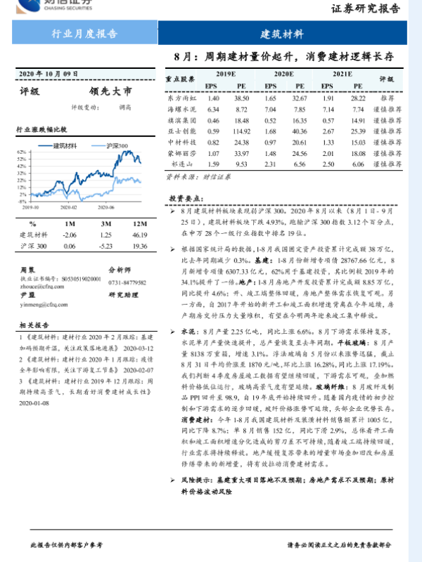 【财信证券】【20201009】8月:周期建材量价起升,消费建材逻辑长存-10页