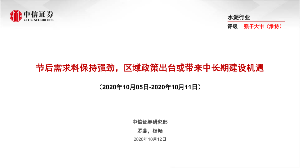 【中信证券】【20201012】节后需求料保持强劲,区域政策出台或带来中长期建设机遇-39页