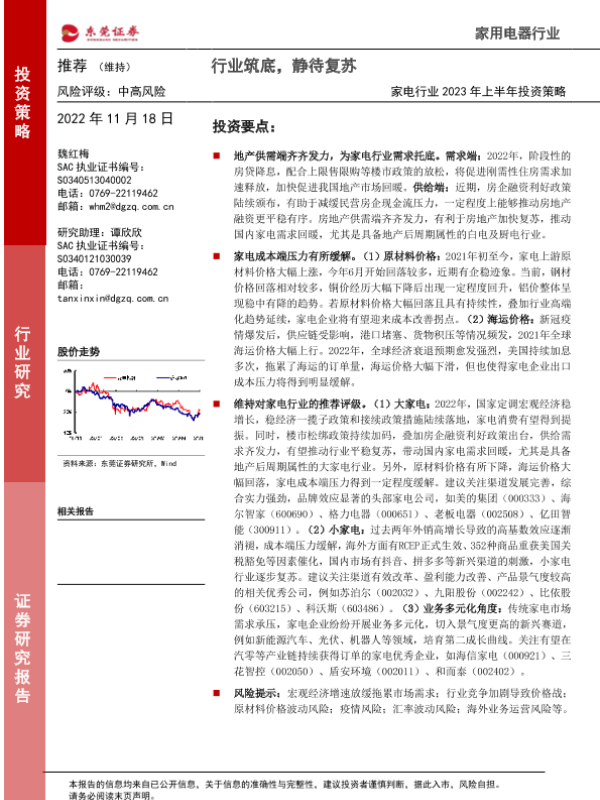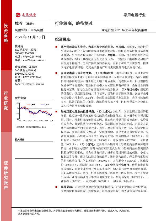 【东莞证券】【20221118】家电行业2023年上半年投资策略:行业筑底,静待复苏-28页