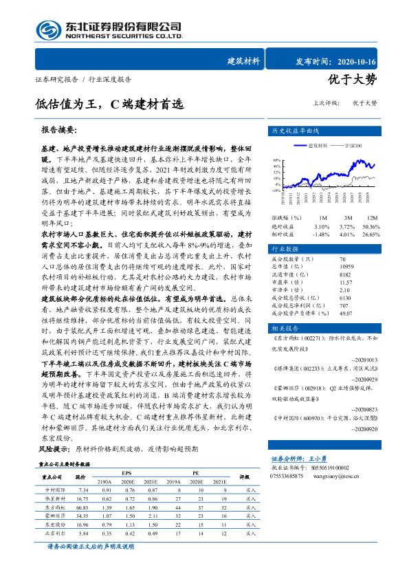【东北证券】【20201016】建筑材料行业深度报告:低估值为王,C端建材首选-33页