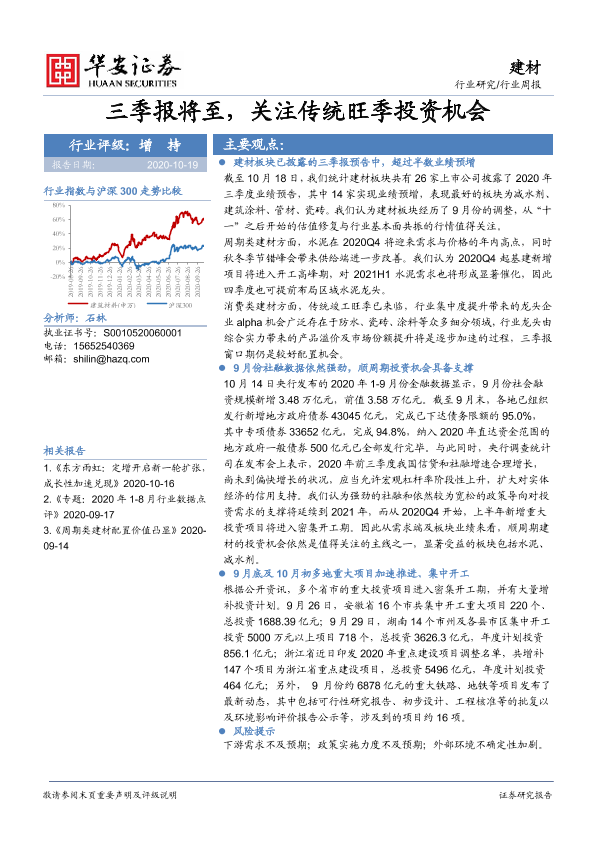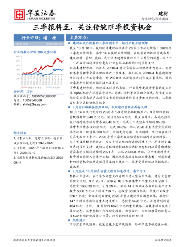 【华安证券】【20201019】建材行业周报:三季报将至,关注传统旺季投资机会-14页