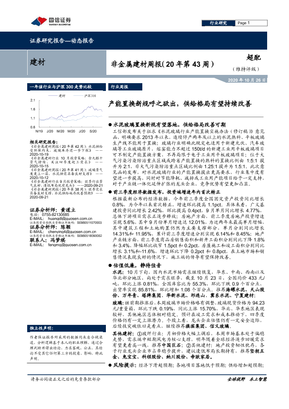 【国信证券】【20201026】非金属建材周报:产能置换新规呼之欲出,供给格局有望持续改善-17页