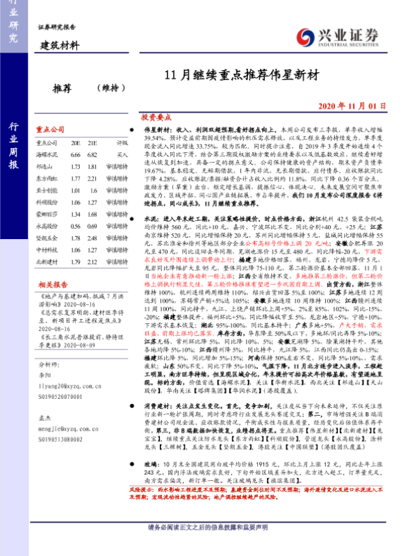【兴业证券】【20201101】11月继续重点推荐伟星新材-13页