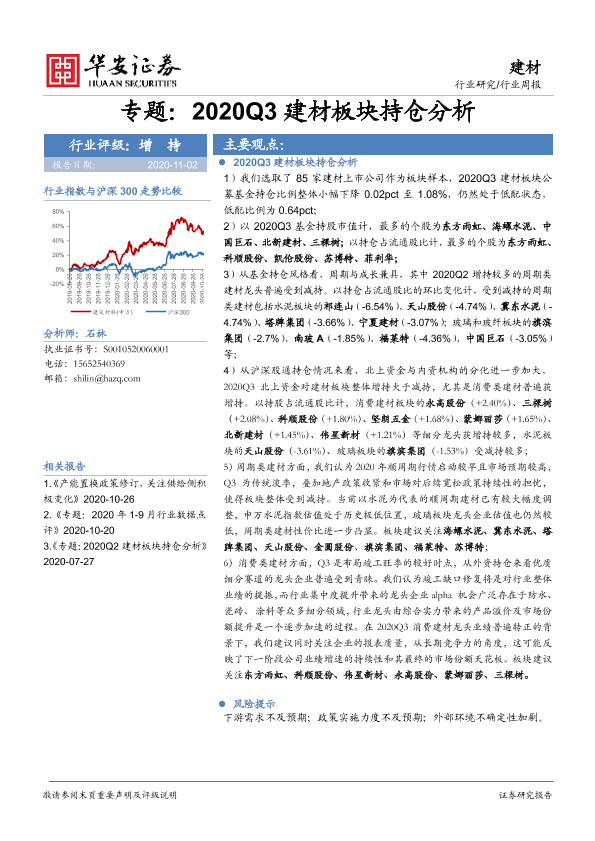 【华安证券】【20201102】2020Q3建材板块持仓分析-22页