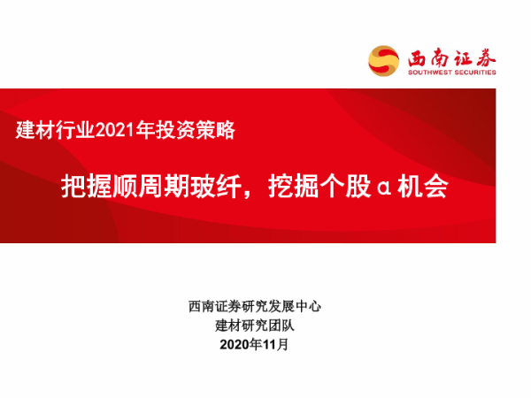 【西南证券】【20201103】建材行业2021年投资策略:把握顺周期玻纤,挖掘个股α机会-23页
