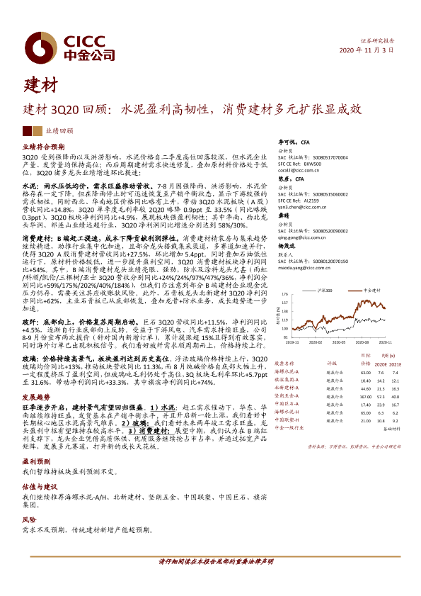 【中金公司】【20201103】建材3Q20回顾:水泥盈利高韧性,消费建材多元扩张显成效-13页
