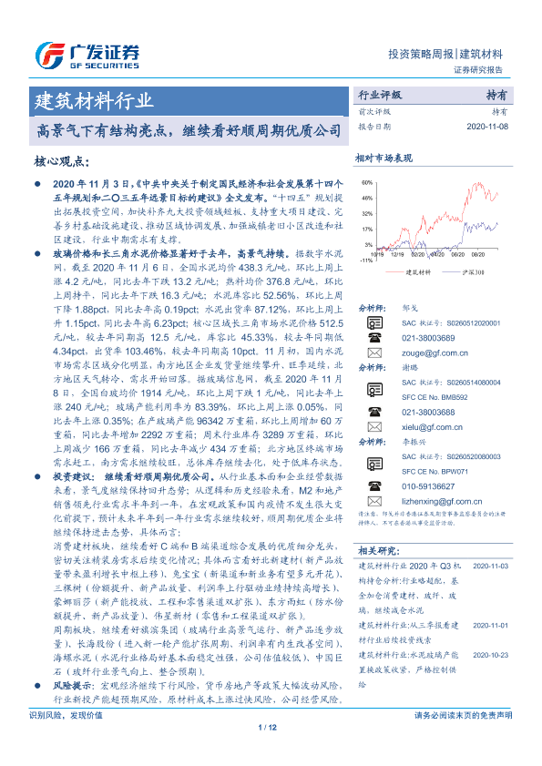 【广发证券】【20201108】建筑材料行业投资策略周报:高景气下有结构亮点,继续看好顺周期优质公司-12页
