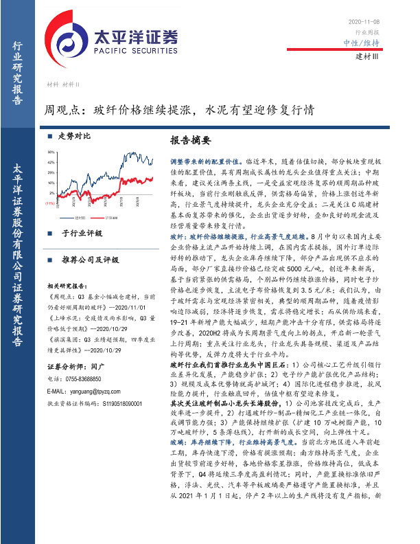 【太平洋证券】【20201108】建材Ⅲ周观点:玻纤价格继续提涨,水泥有望迎修复行情-18页