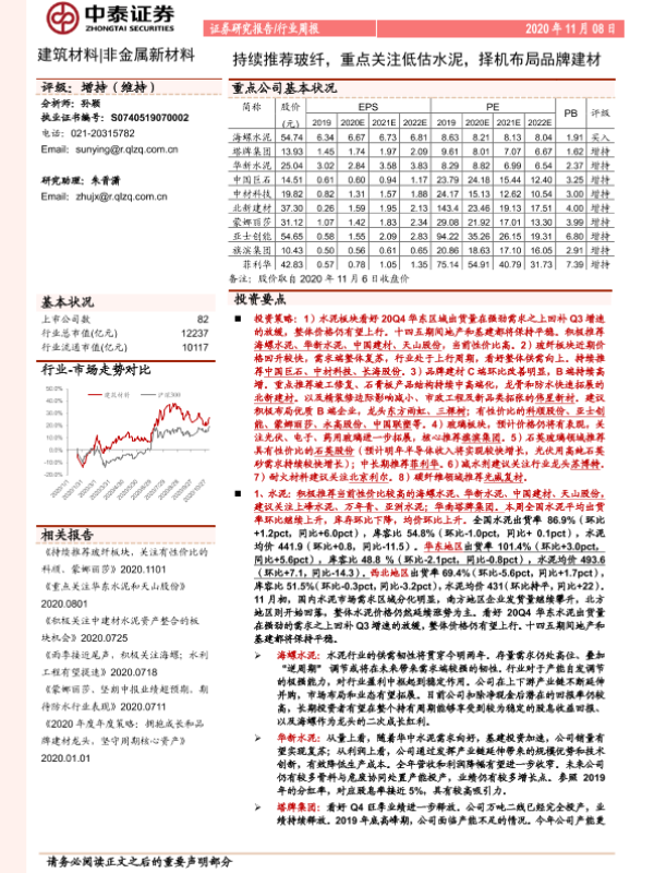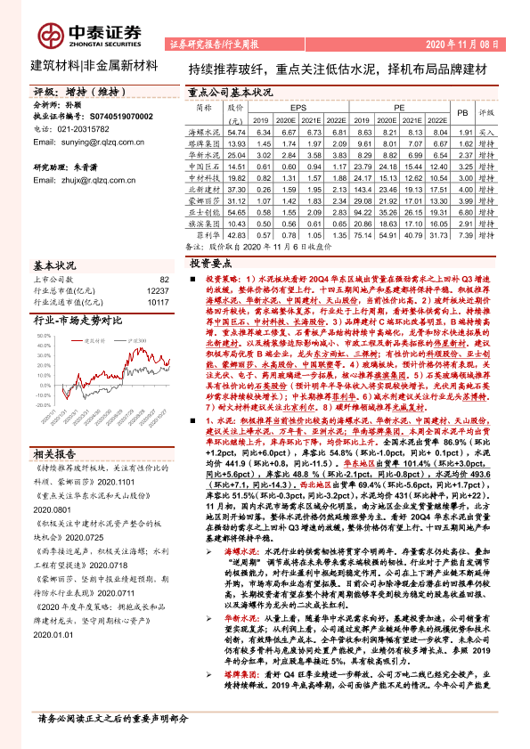 【中泰证券】【20201108】持续推荐玻纤,重点关注低估水泥,择机布局品牌建材-24页