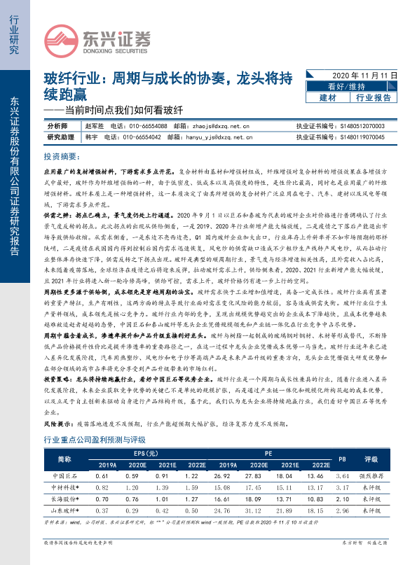 【东兴证券】【20201111】当前时间点我们如何看玻纤:玻纤行业:周期与成长的协奏,龙头将持续跑赢-23页