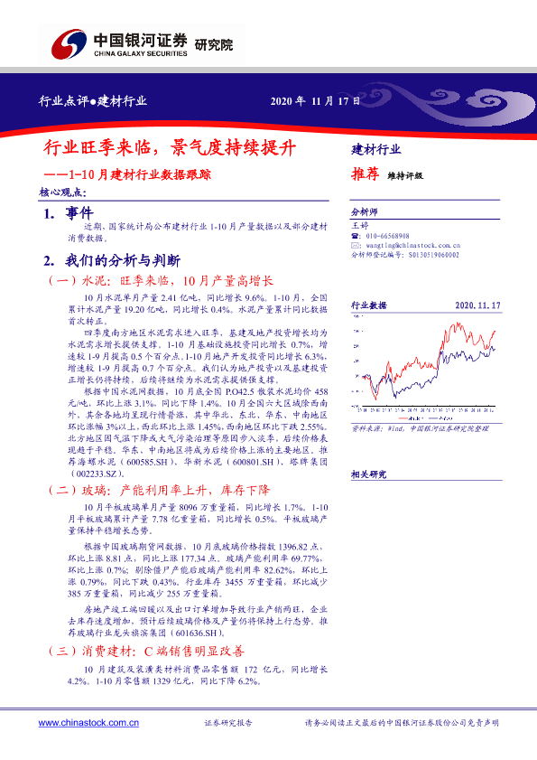 【银河证券】【20201117】1-10月建材行业数据跟踪:行业旺季来临,景气度持续提升-4页