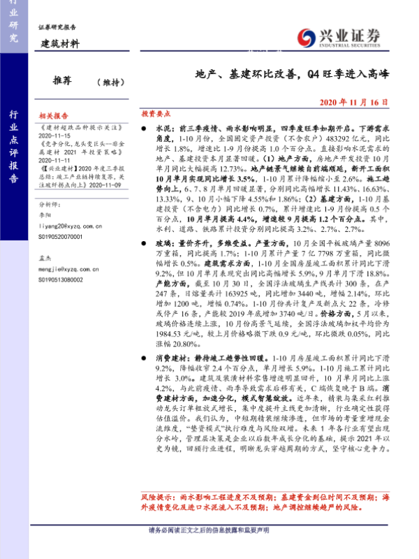 【兴业证券】【20201116】地产、基建环比改善,Q4旺季进入高峰-8页