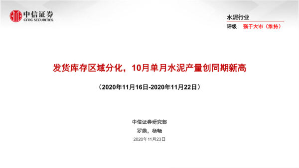 【中信证券】【20201123】发货库存区域分化,10月单月水泥产量创同期新高-39页