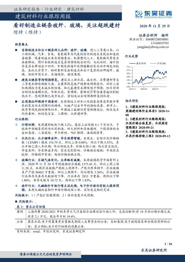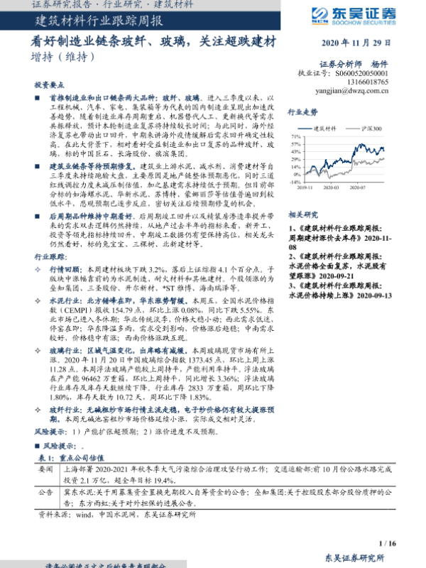 【东吴证券】【20201129】建筑材料行业跟踪周报:看好制造业链条玻纤、玻璃,关注超跌建材-16页