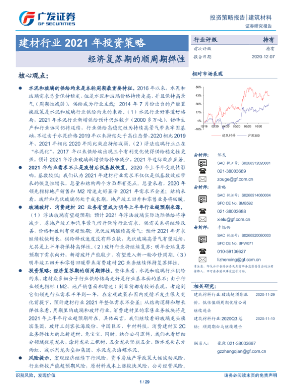 【广发证券】【20201207】建材行业2021年投资策略:经济复苏期的顺周期弹性-29页
