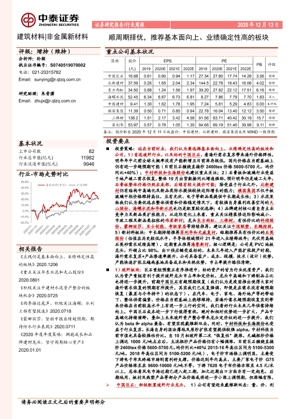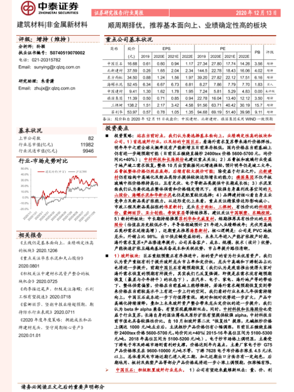 【中泰证券】【20201213】非金属新材料行业周报:顺周期择优,推荐基本面向上、业绩确定性高的板块-24页
