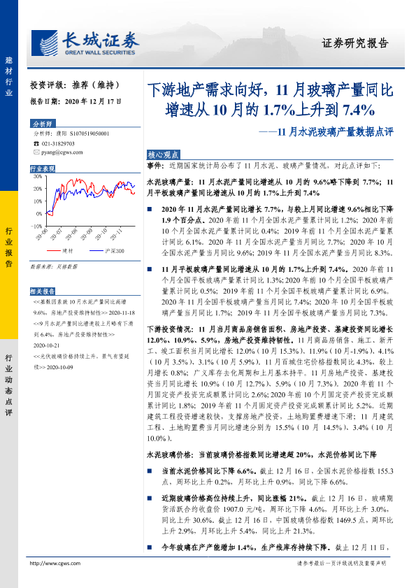 【长城证券】【20201217】建材行业11月水泥玻璃产量数据点评-11页