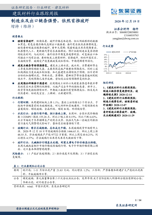 【东吴证券】【20201219】建筑材料行业跟踪周报:制造业及出口链条强势,依然首推玻纤-14页