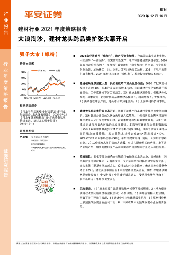【平安证券】【20201216】建材行业2021年度策略报告:大浪淘沙,建材龙头跨品类扩张大幕开启-27页