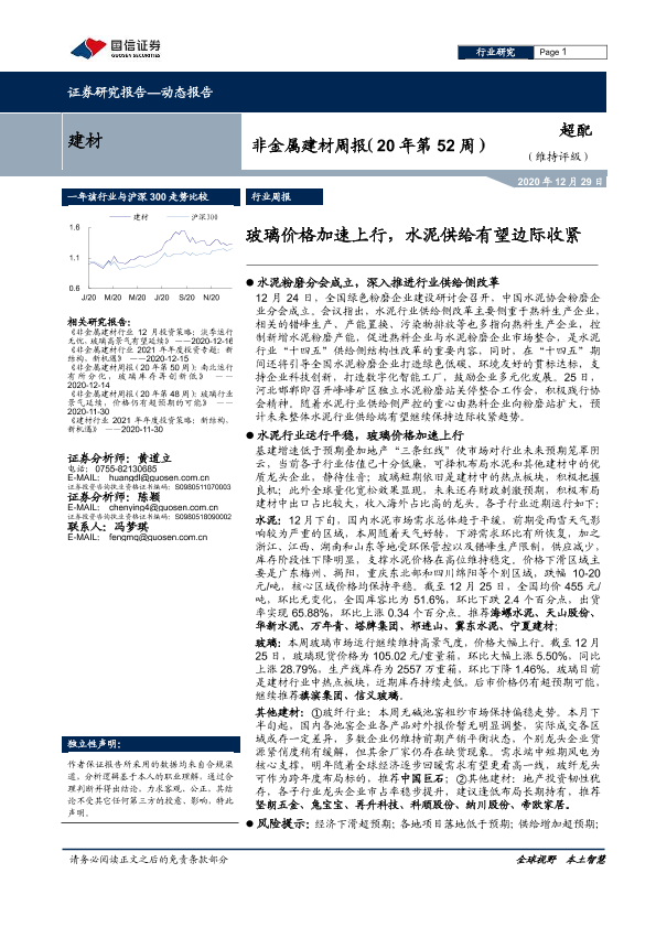 【国信证券】【20201229】非金属建材周报:玻璃价格加速上行,水泥供给有望边际收紧-16页