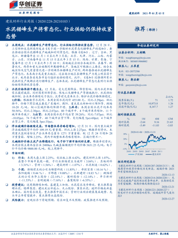 【华创证券】【20210103】建筑材料行业周报:水泥错峰生产将常态化,行业供给仍保持收紧态势-15页