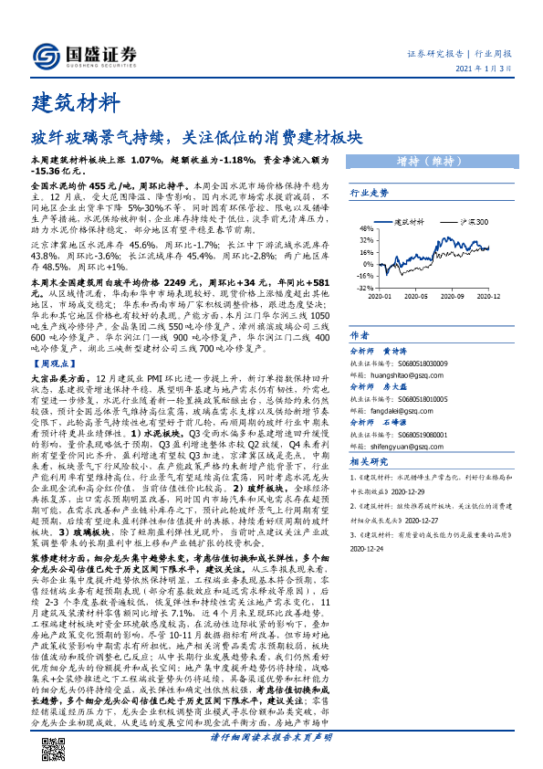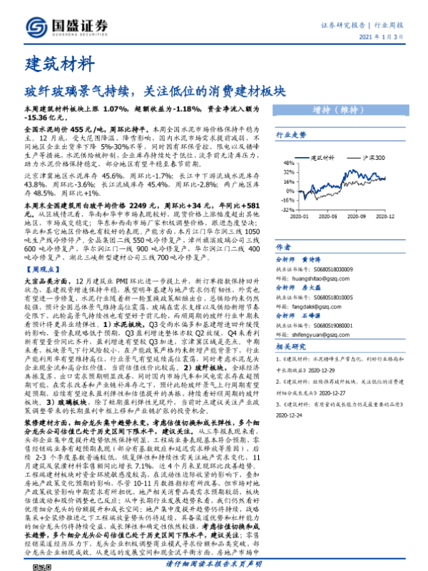 【国盛证券】【20210103】建筑材料行业周报:玻纤玻璃景气持续,关注低位的消费建材板块-23页