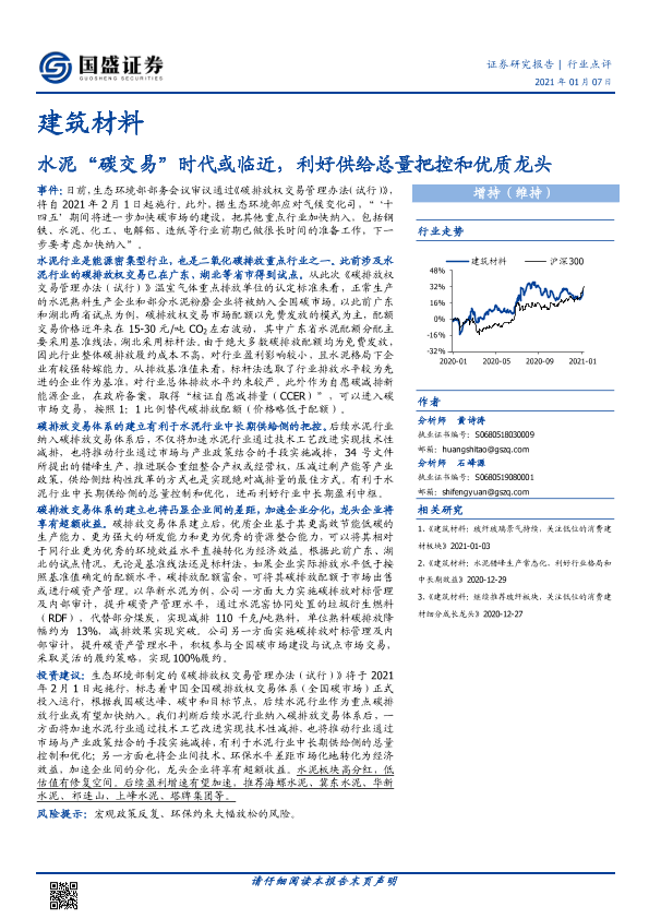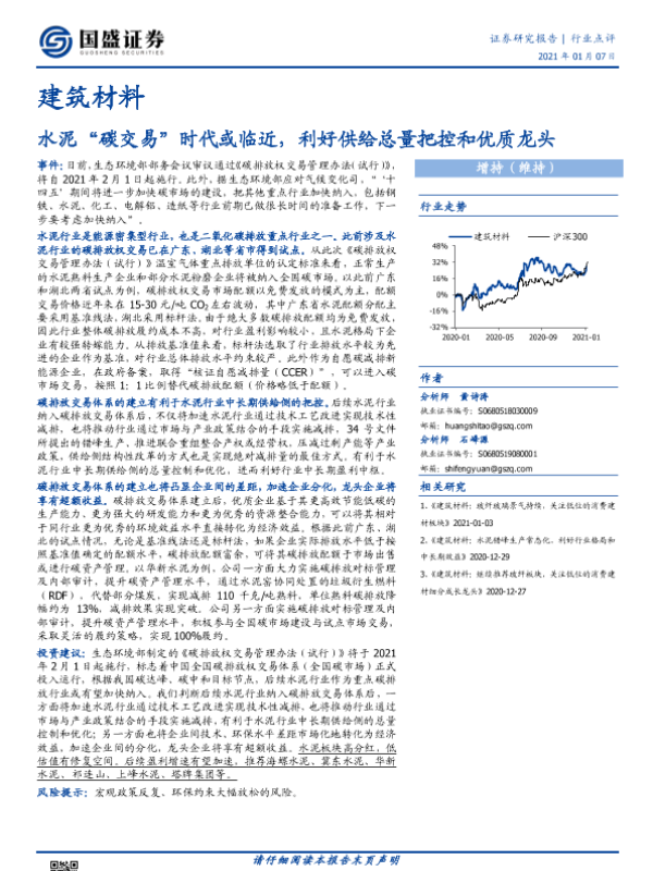 【国盛证券】【20210107】建筑材料行业:水泥“碳交易”时代或临近,利好供给总量把控和优质龙头-8页
