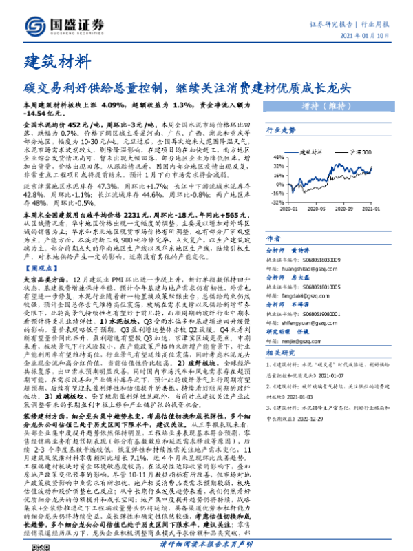 【国盛证券】【20210110】建筑材料行业周报:碳交易利好供给总量控制,继续关注消费建材优质成长龙头-23页