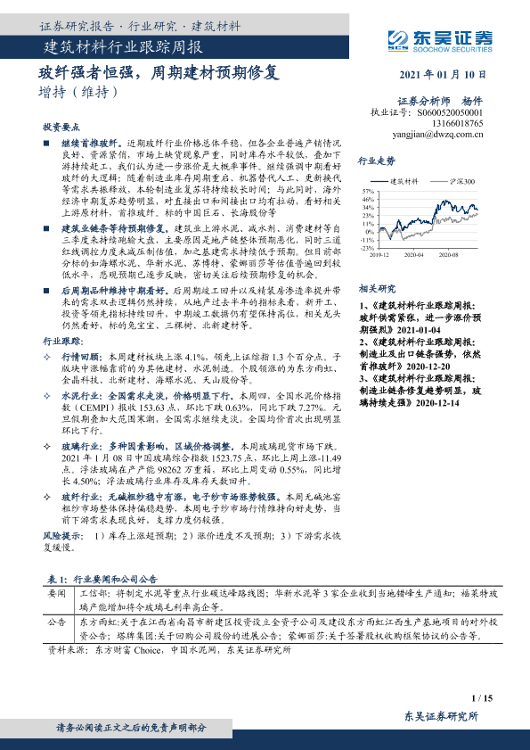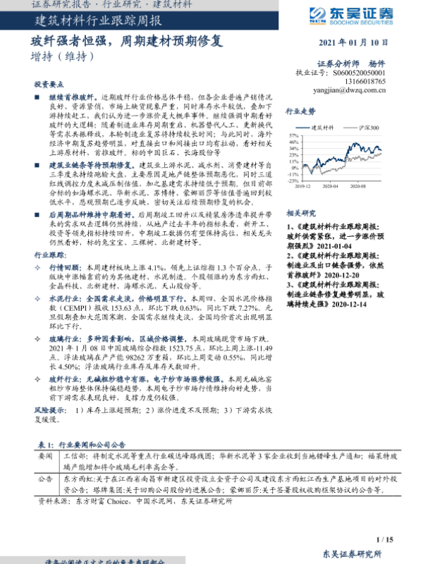 【东吴证券】【20210110】建筑材料行业跟踪周报:玻纤强者恒强,周期建材预期修复-15页
