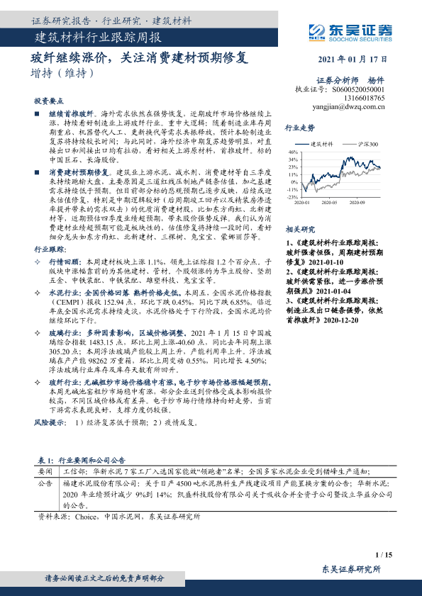 【东吴证券】【20210117】建筑材料行业跟踪周报:玻纤继续涨价,关注消费建材预期修复-15页