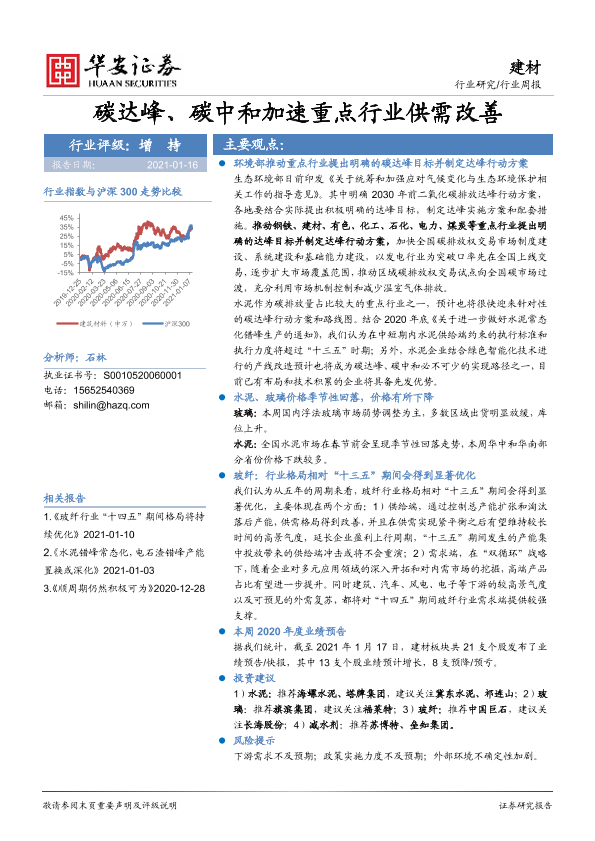 【华安证券】【20210116】建材行业周报:碳达峰、碳中和加速重点行业供需改善-16页