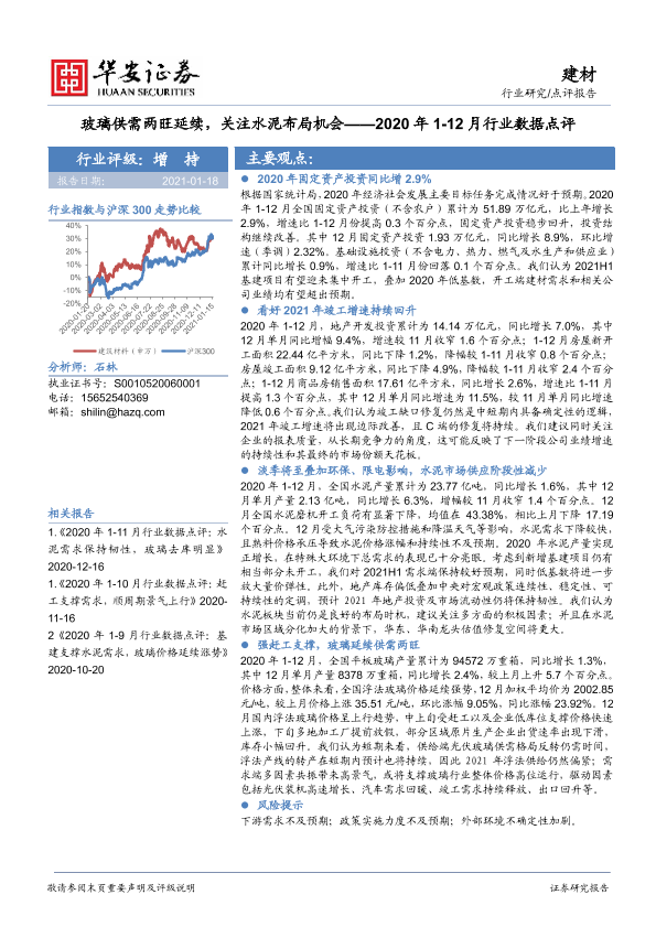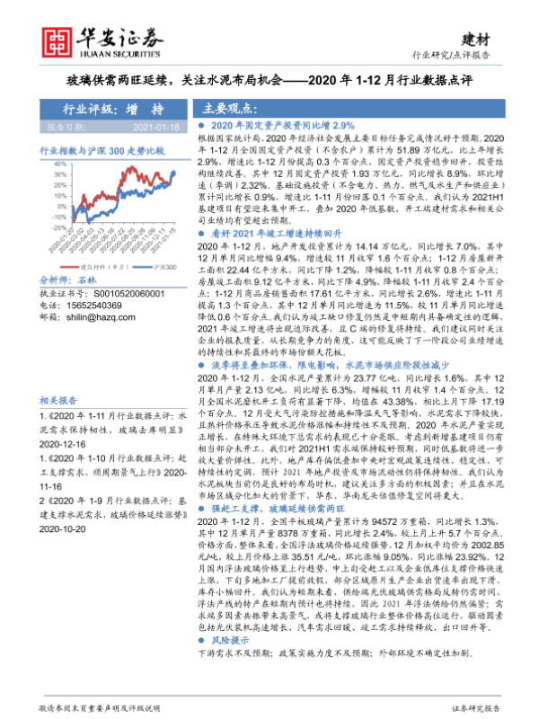 【华安证券】【20210118】建材2020年1-12月行业数据点评:玻璃供需两旺延续,关注水泥布局机会-10页
