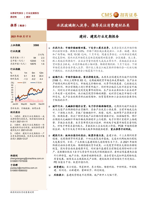 【海通证券】【20210117】建材、建筑行业定期报告:水泥玻璃渐入淡季,推荐关注消费建材品类-37页