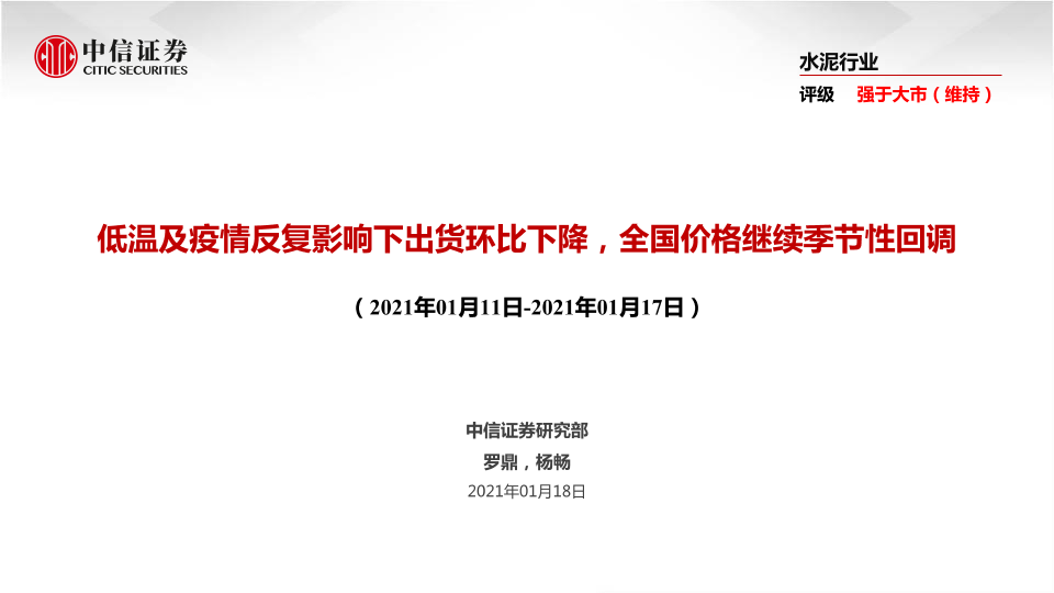 【中信证券】【20210118】低温及疫情反复影响下出货环比下降,全国价格继续季节性回调-40页
