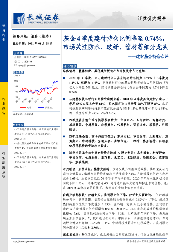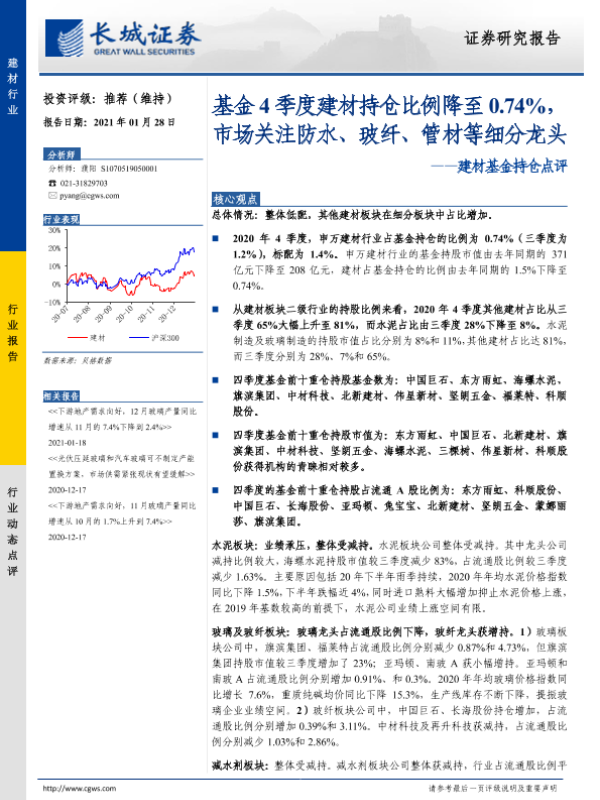 【长城证券】【20210128】基金4季度建材持仓比例降至0.74%,市场关注防水、玻纤、管材等细分龙头-8页