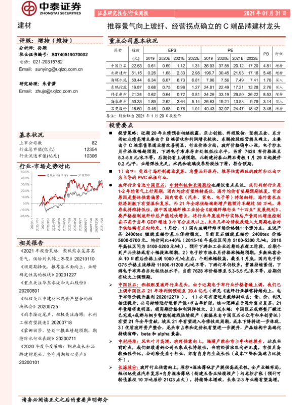 【中泰证券】【20210131】建材行业周报:推荐景气向上玻纤、经营拐点确立的C端品牌建材龙头-25页