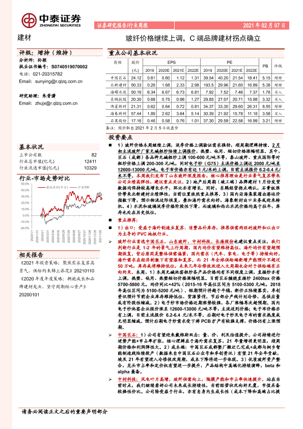 【中泰证券】【20210207】建材行业周报:玻纤价格继续上调,C端品牌建材拐点确立-25页