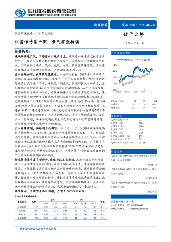 供需分析 光伏玻璃 建筑材料 景气预测 玻璃行业