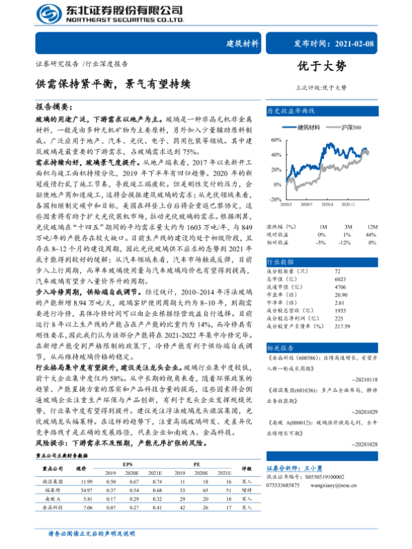 【东北证券】【20210208】建筑材料行业深度报告:供需保持紧平衡,景气有望持续-34页