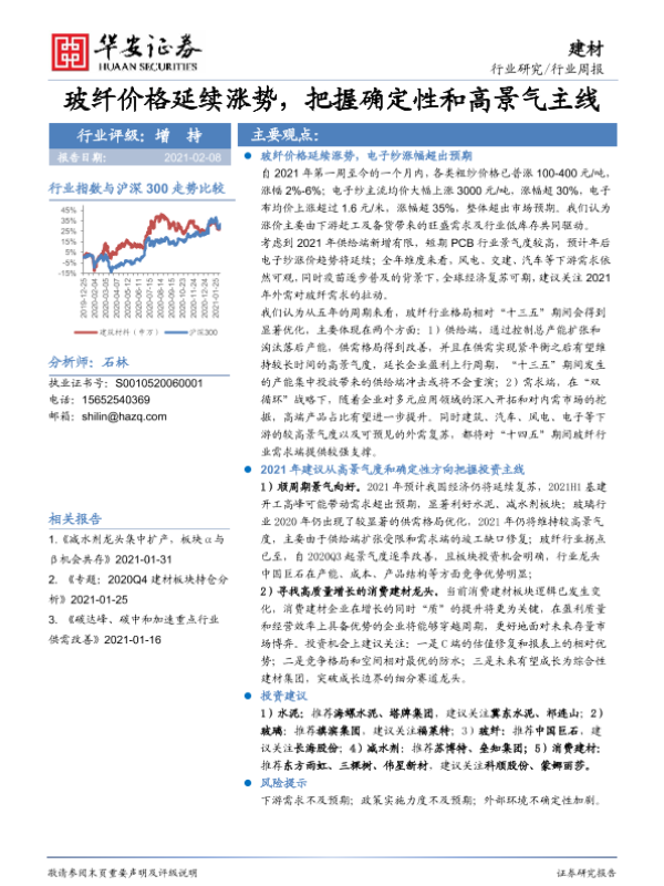 【华安证券】【20210208】建材行业周报:玻纤价格延续涨势,把握确定性和高景气主线-17页