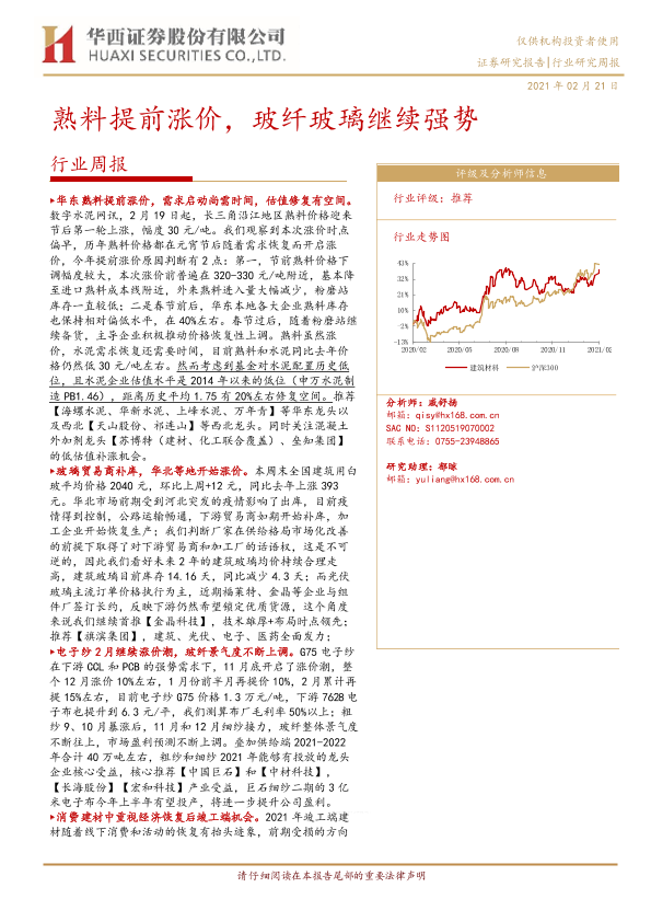 【华西证券】【20210221】熟料提前涨价,玻纤玻璃继续强势-15页