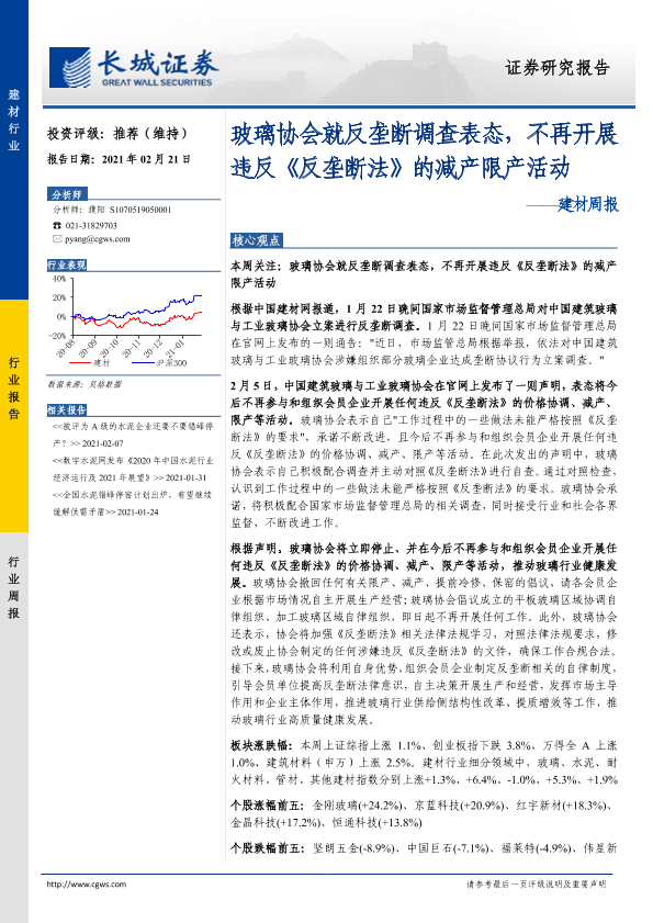 【长城证券】【20210221】玻璃协会就反垄断调查表态,不再开展违反《反垄断法》的减产限产活动-19页