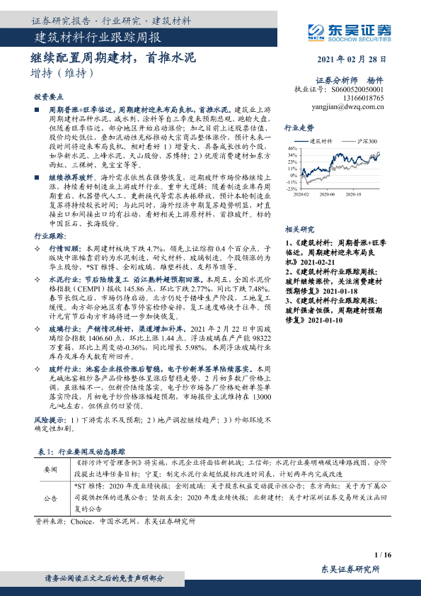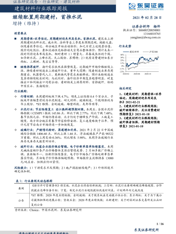 【东吴证券】【20210228】建筑材料行业跟踪周报:继续配置周期建材,首推水泥-16页