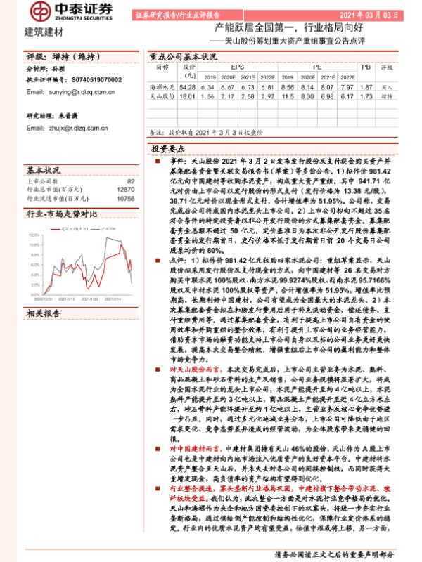 【中泰证券】【20210303】建筑建材:天山股份筹划重大资产重组事宜公告点评-产能跃居全国第一,行业格局向好-6页