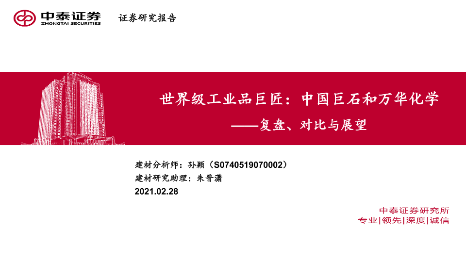 【中泰证券】【20210228】建筑材料行业:复盘、对比与展望:世界级工业品巨匠:中国巨石和万华化学-32页